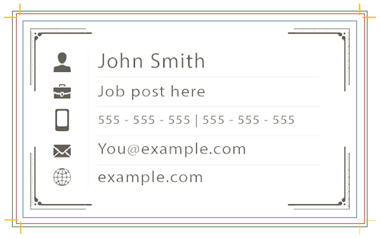 | Business Cards | 3mm on all sides | Ensures colour or background design reaches edge after trimming. |