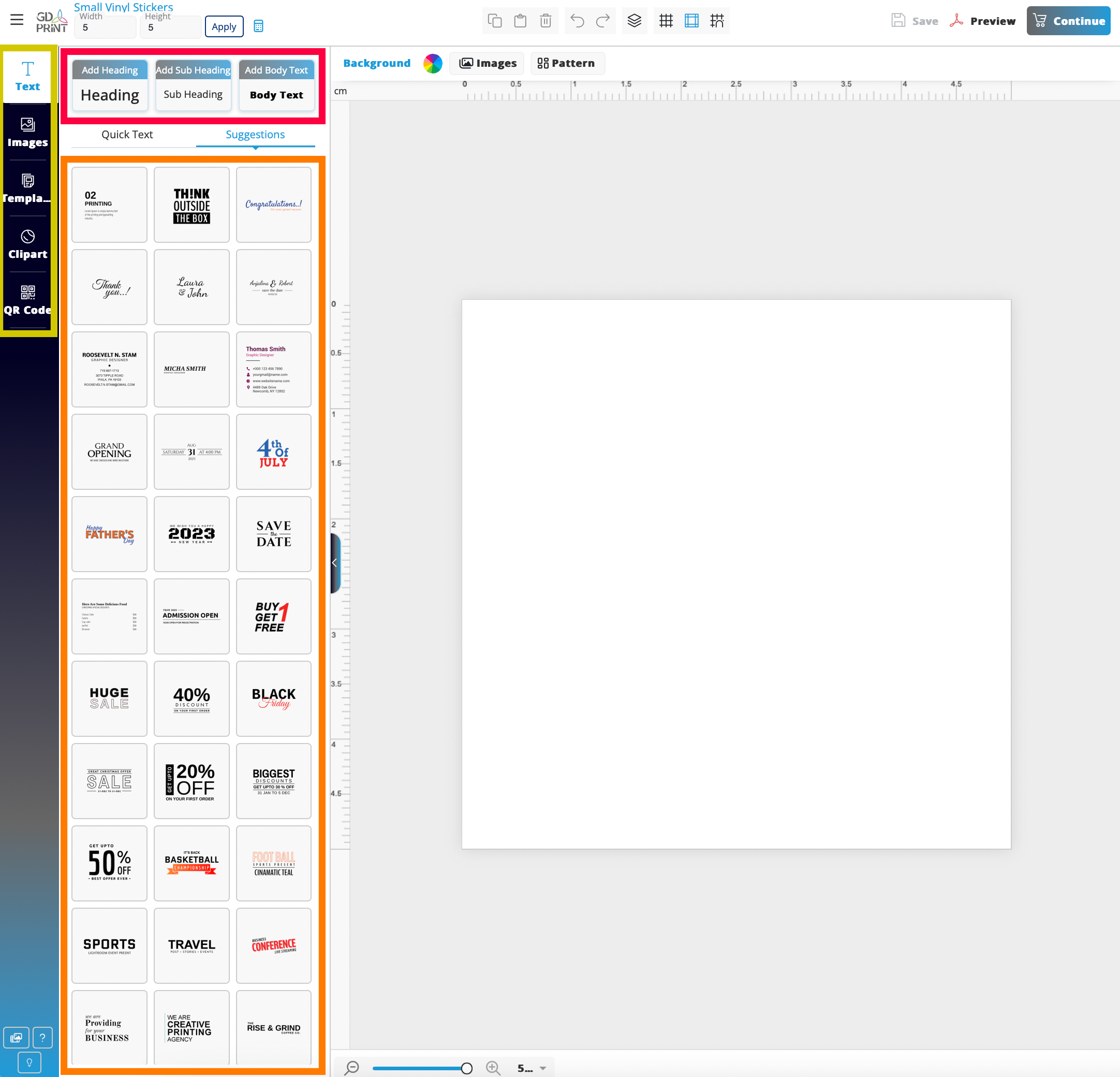 With features similar to Canva and other popular online design platforms, you can: • Drag and drop text, images, and shapes into place • Layer text over images for eye-catching effects • Resize, rotate, and align elements easily • Use pre-made templates, text styles, and stock images to speed up your design • Upload your own logos or photos directly from your device • Preview your design in real time before submitting your order • Save your design in your account so you can easily reorder or make updates in the future! Whether you’re designing a business card, flyer, or banner, our design tool helps you build a polished, print-ready layout—no design experience required. | ![]() |