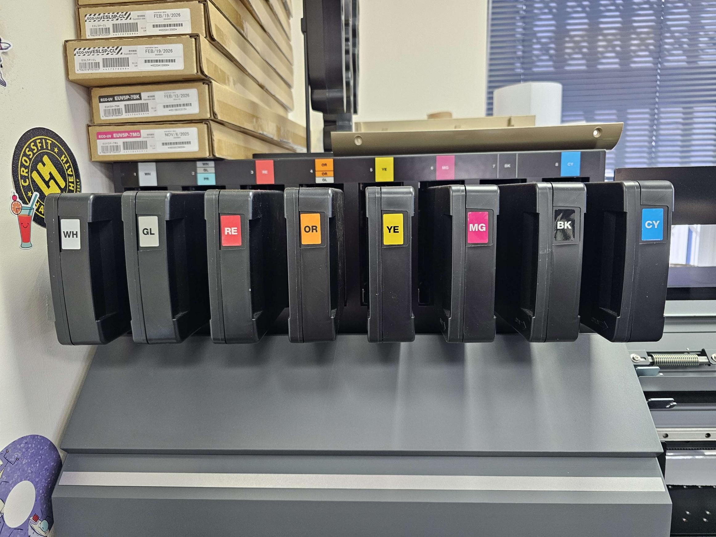 | But printers are evolving, they are always getting more efficient and improving how they process colours and how they use inks. For example, at GD Print we use the most cutting edge printers that can process anywhere from the darkest blacks, to the whitest whites. This new CMYK format, uses a wider colour range of White, Gloss, Orange and Red inks in addition to the standard colours. These additional inks allow for more options for finishes and a much deeper colour depth, than typically available in large format printing. GD Print displays the evolution of printers and how they are always changing to try and meet the most accurate colour reproduction possible! Now then let's break down in depth what RGB and CMYK actually is. | ![]() At GD Print, our large format printer and cutter uses advanced ink technology— including not just CMYK, but also white, red, orange, and gloss inks—to deliver a wider, more vibrant colour gamut and enhanced finishing options. |
